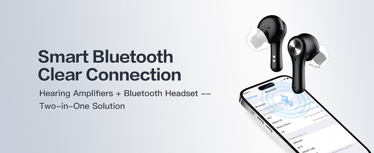 - 🎶Say goodbye to the hassle of manual pairing, this hearing aid automatically link to your device when powered on, giving you an effortless and seamless listening experience every time.