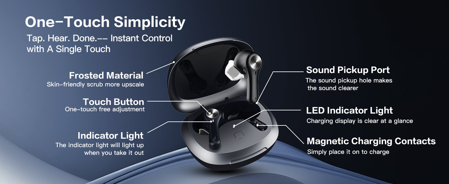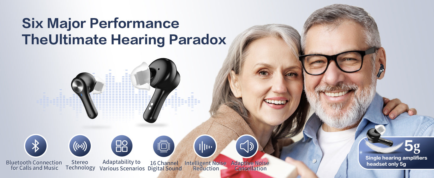 - 🎶We've done away with the old-fashioned design concept, instead opting for a headset-style design with a glossy piano paint coating that is both waterproof and sweat-proof. This means you can confidently wear your hearing aids in any setting, knowing they will withstand whatever the day throws at you.
